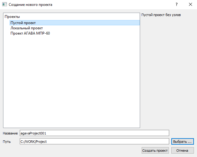 Окно "Создание нового проекта"